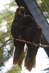 Schon von weitem zu hören - die Papageien. Verschiedene Arten bevölkern die Volieren beidseits des Weges. Das die Gitter nicht ganz so eng sind, lassen sich die Papageienvögel recht gut ins Bild setzen.